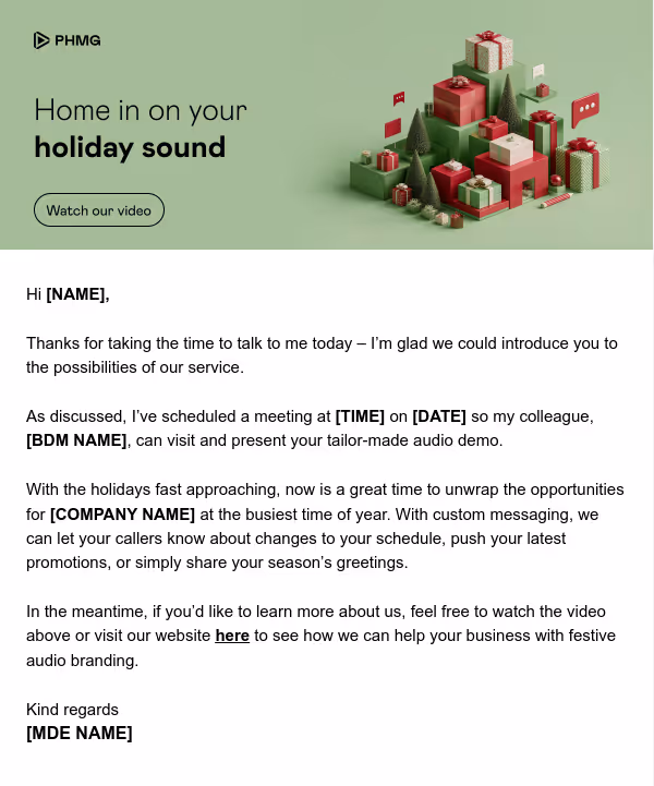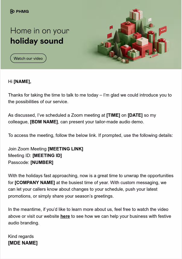 This asset pack provides everything you need for a successful Q4, equipping you with the assets to optimise calls during the busiest period of the year. Inside, you’ll find industry prompt cards, festive communications, audio productions, a prospect landing page and more. Designed to ensure brand consistency and support impactful conversations, it’s your one-stop resource for showcasing the festive campaign, inspiring action, and driving results.