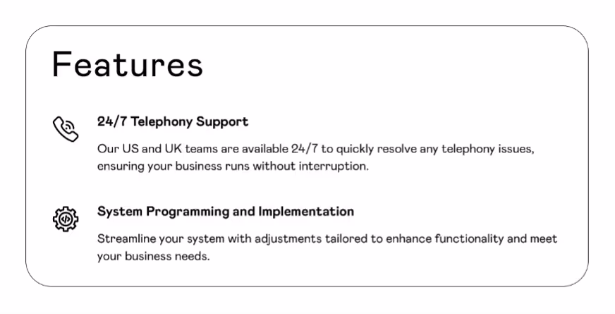 To recap, our Responsepackage enables our expert team to partner with you and provide strategic,informed solutions that will ensure your telephony system is performing at itspeak, 100% of the time. I’ve attached our proposal for you to review and the featuresare listed below